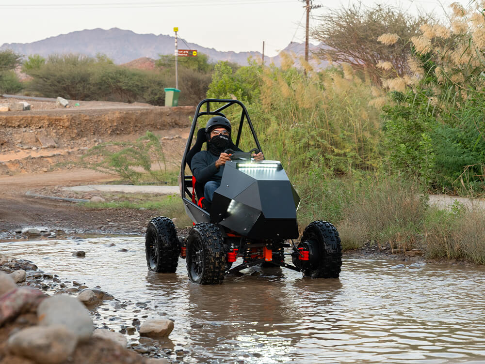 Cyber Kart is our signature off-road carting adventure that takes you through the stunning foothills of the Hatta Mountains. Enjoy a 45-minute guided ride filled with scenic trails, rugged terrain, and refreshing mountain breezes. Splash through small puddles of water and cruise past natural vegetation as you explore the raw beauty of Hatta. The route offers breathtaking views and an exciting mix of thrill and nature. Cyber Kart is the perfect blend of adventure, scenery, and unforgettable outdoor fun.